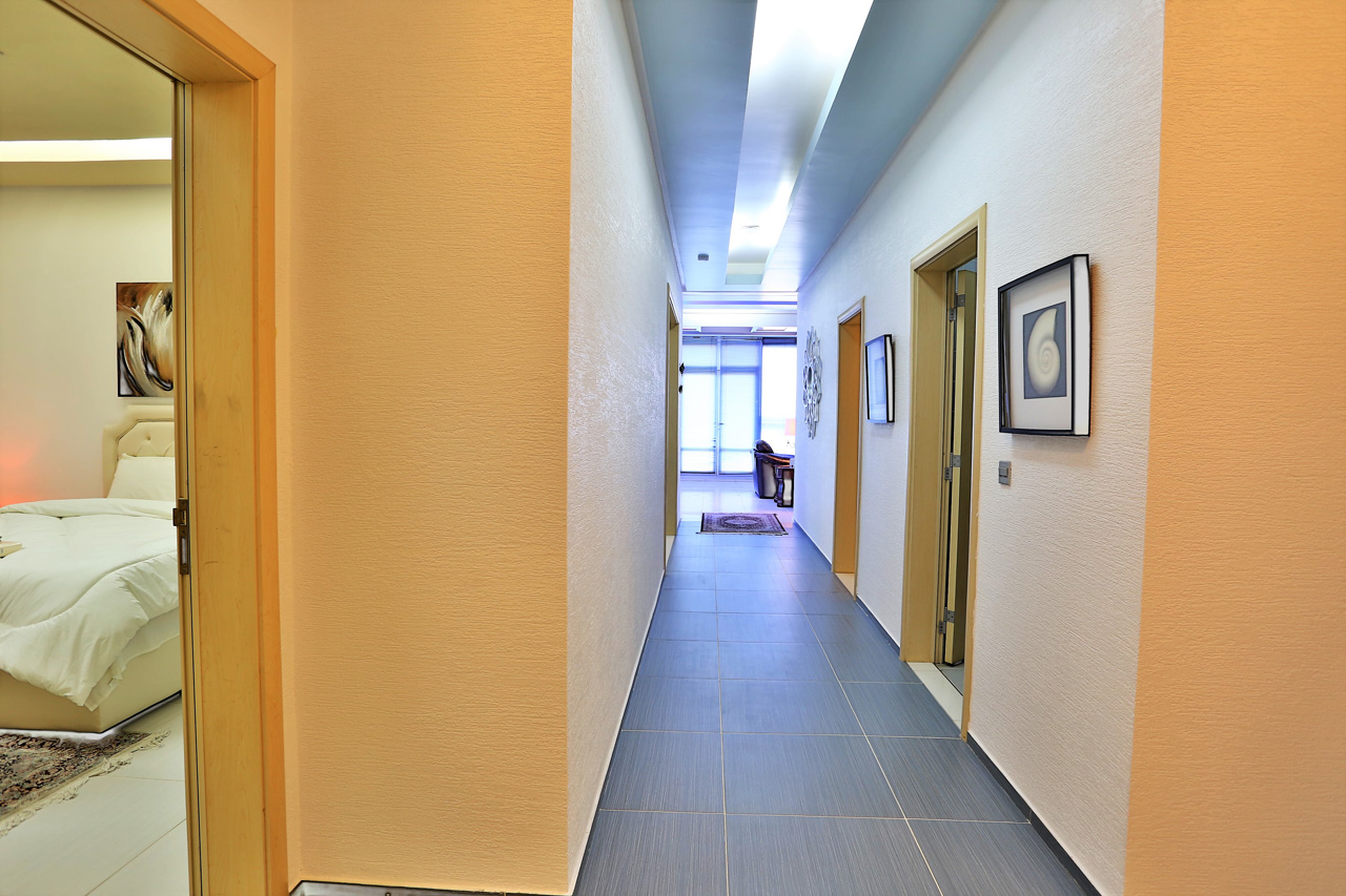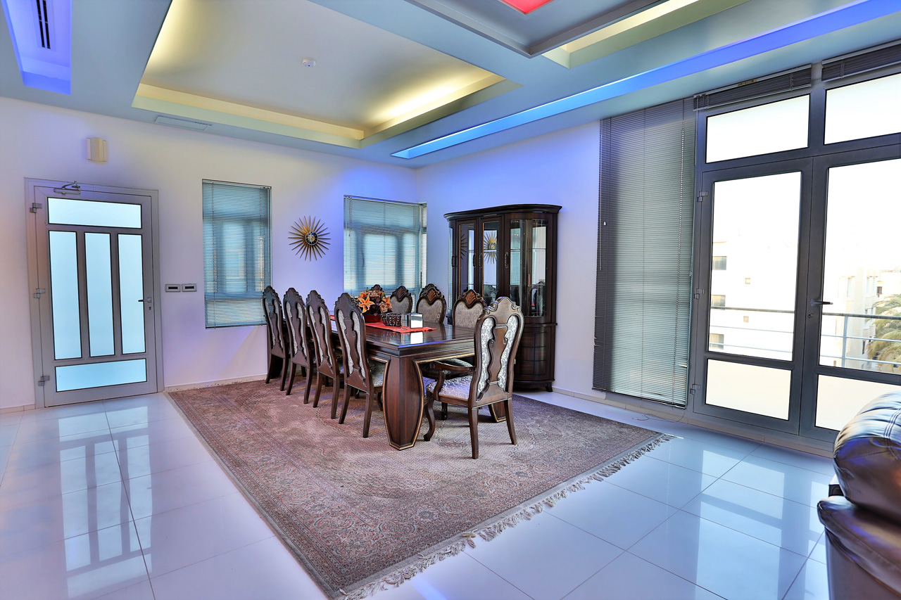3 Bedroom Apartment, fully furnished, equipped open kitchen style, dining room, 4 bathrooms, laundry room, maid’s room, swimming pool, GYM, wi-fi, sea view