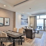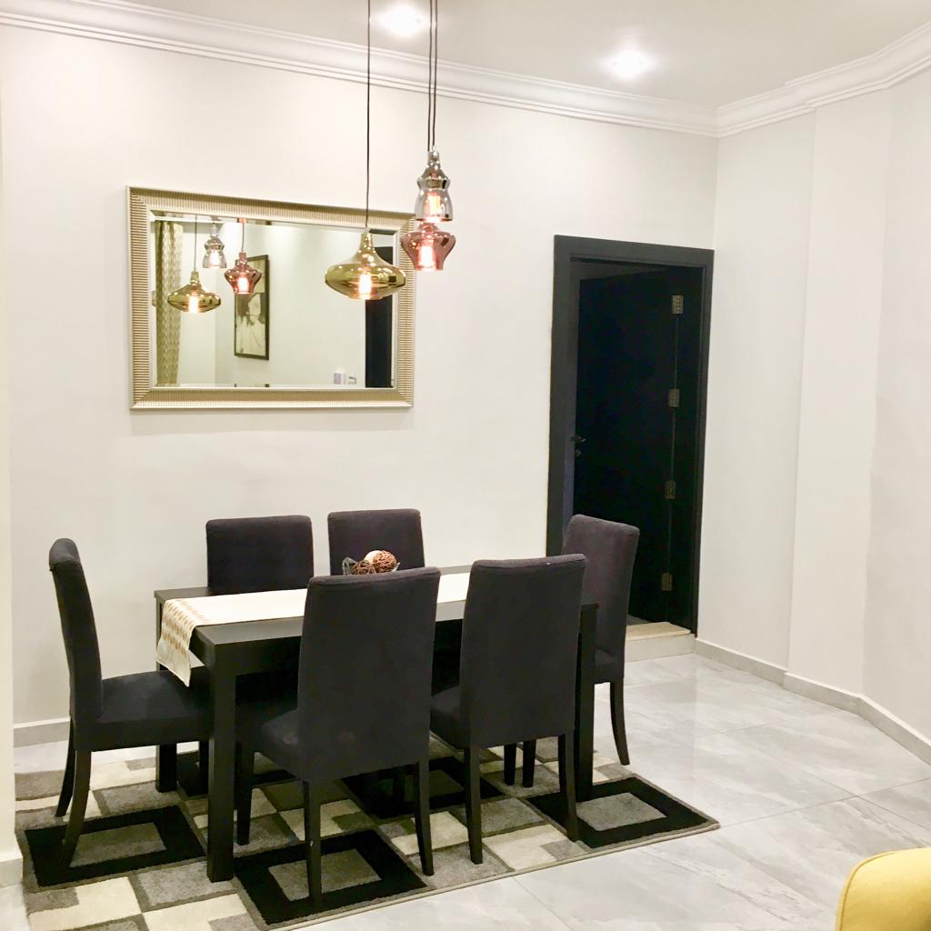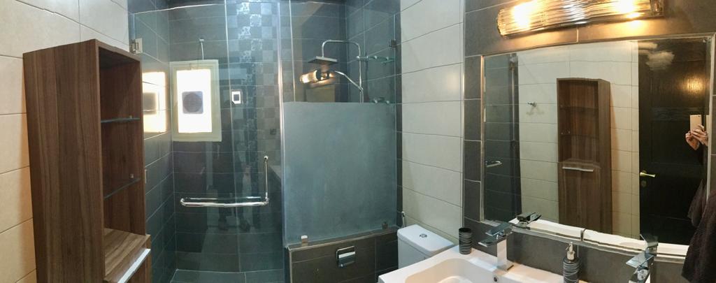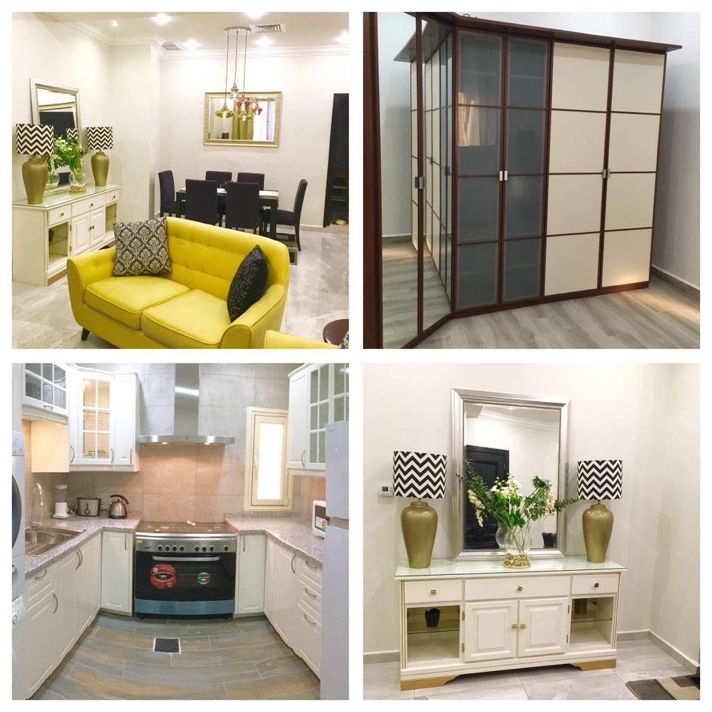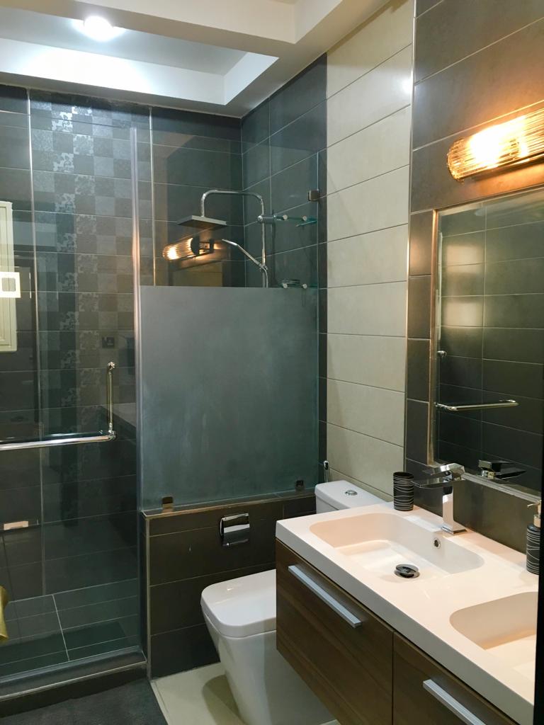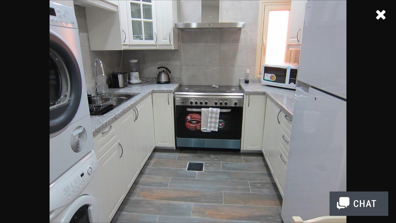 Two bedroom apartment one is a master bedroom, 2 bathrooms, fully furnished and equipped kitchen including dry cleaner, on the second floor with no tenants on top, private elevator, cctv security cameras, Intercom, 1 Private covered parking, satellite, central AC