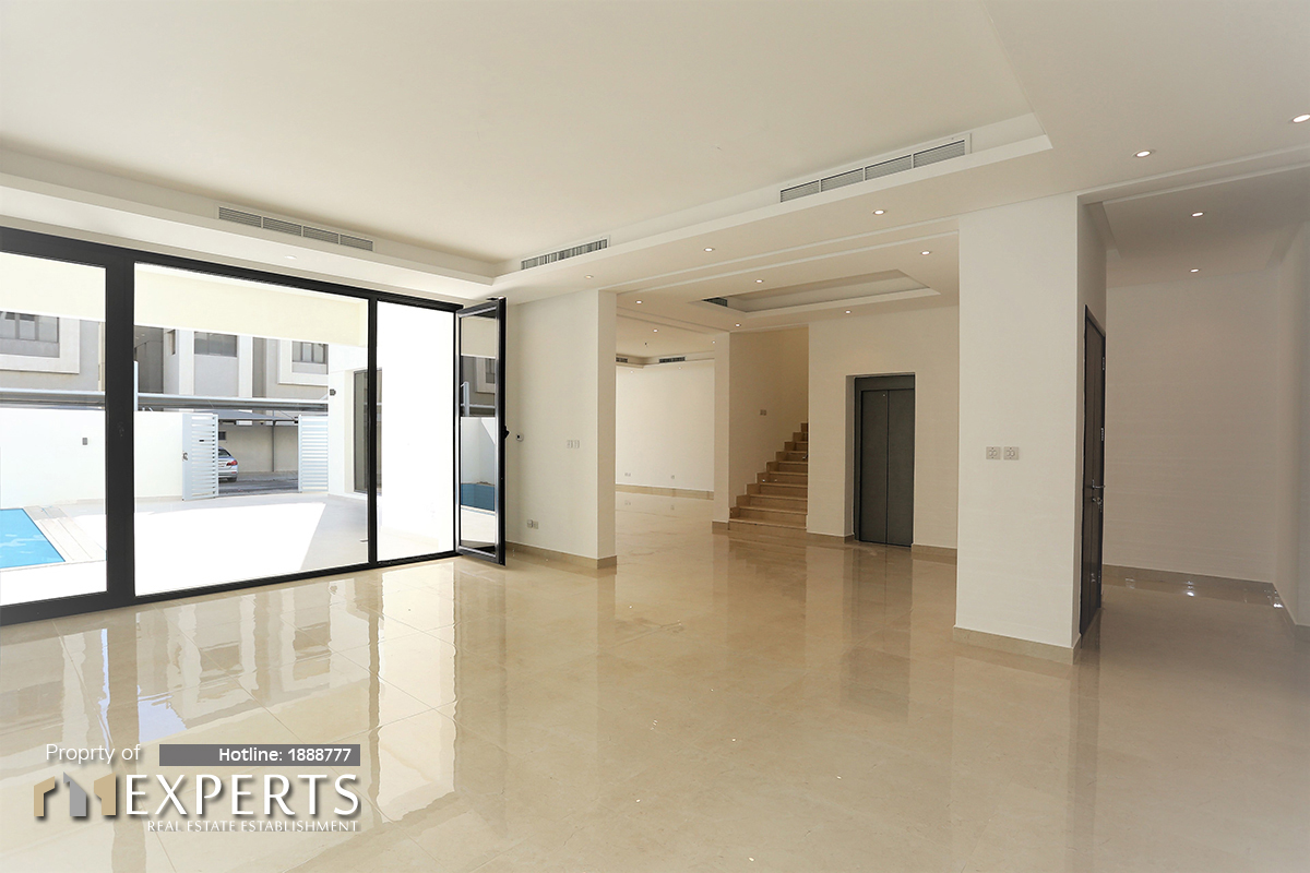 Salem Villas – Luxury Brand new villa in Sideeq block -3 standing in the centre of Kuwait. Easy entry and exit. 5 master bedrooms, built-in closets, guest bathroom, 2 living and dining halls, 2 kitchens, elevator, upstair family area, spacious terrace for BBQ, driver room with bathroom, maid room with bathroom, store room, laundry room, swimming pool, high security fence with 5 shaded parking. Price starting at KWD 2600 – 2750.