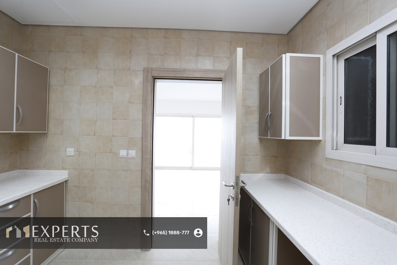 Beautiful 3 bedrooms apartment in Mahboula over seeing highway 30, balcony, private garden, 3 Bathrooms, Maid’s room, Laundry Room, Swimming pool, GYM, 24×7 Security and private parking