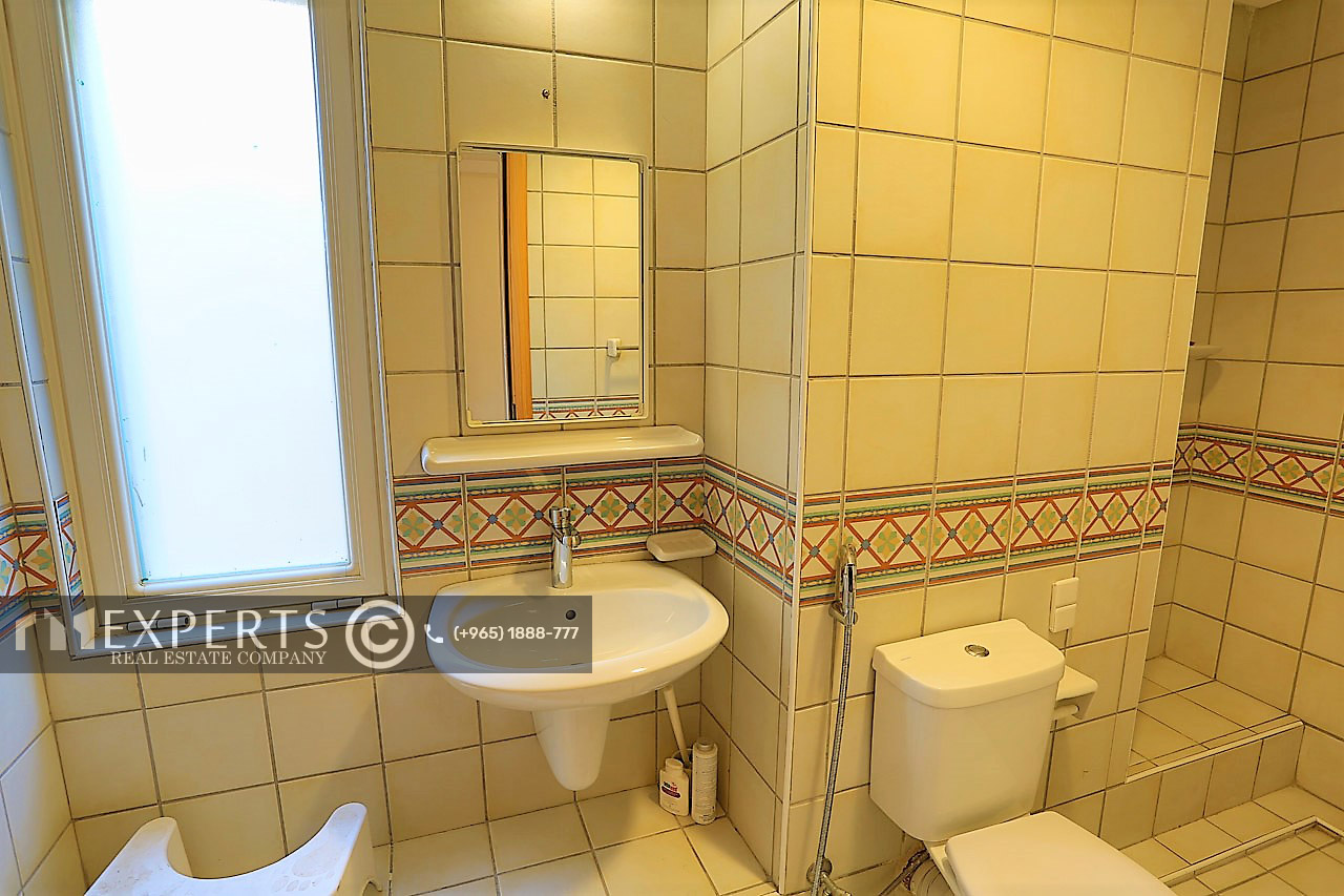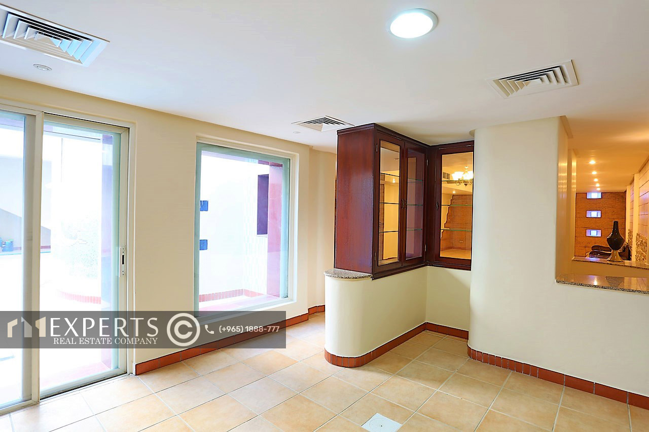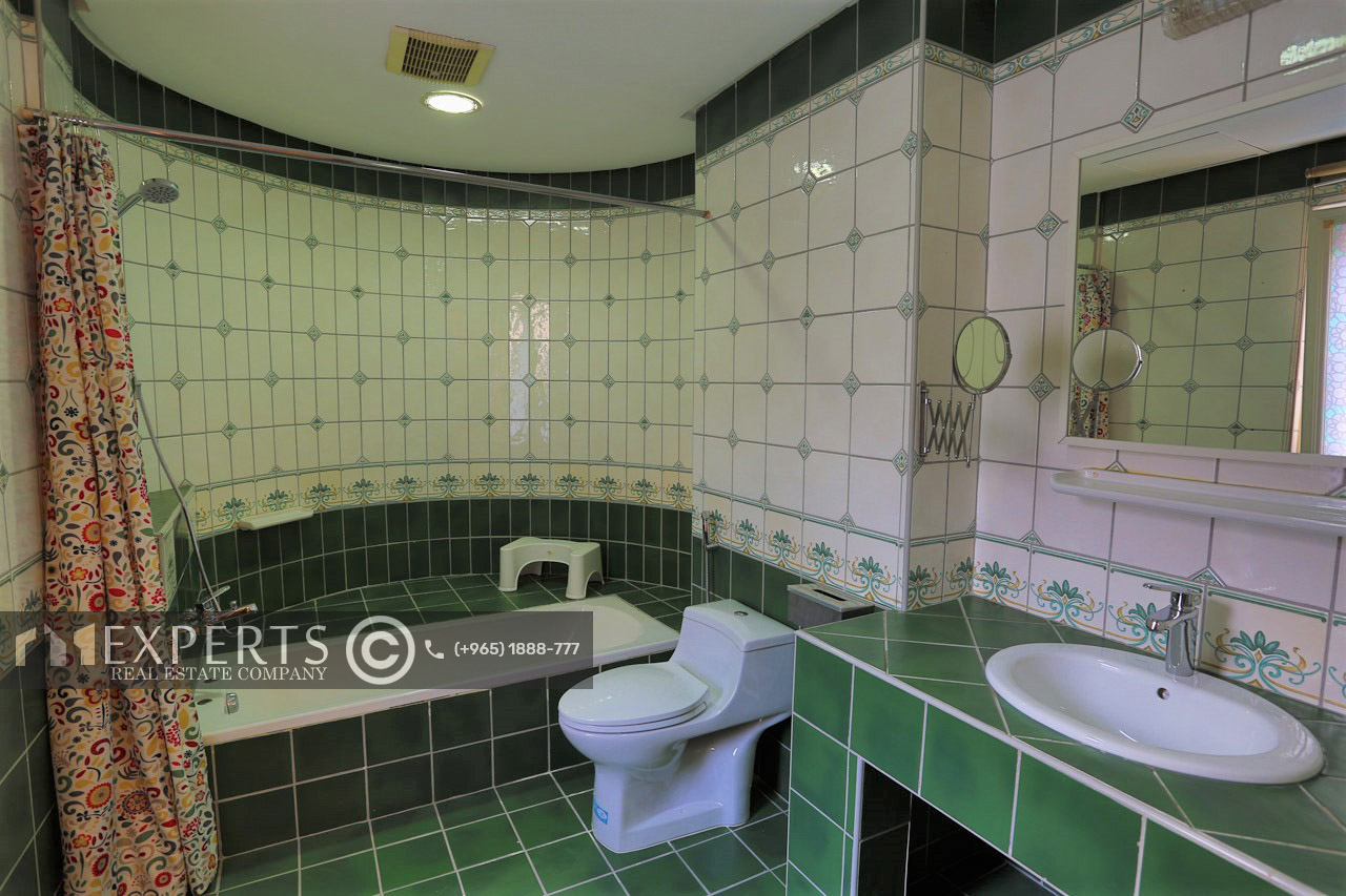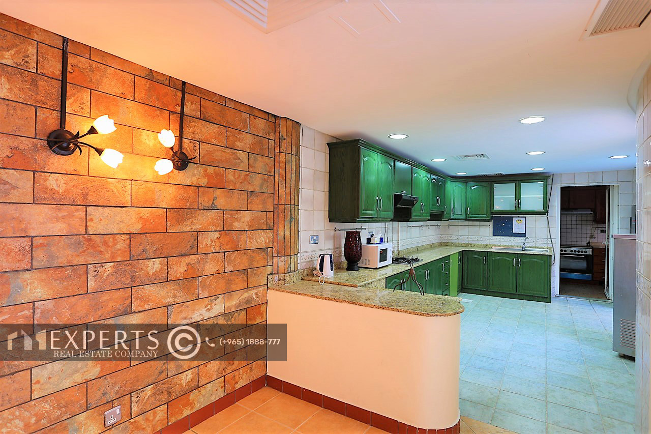 A Beautiful Spanish Style Villa, 2 floors, 2 large living rooms, dining room, 2 equipped kitchens, 4 bedrooms, 1 master bedroom, maid’s room, 5 Bathrooms, private indoor parking, swimming pool, driver’s room in Mubaral Al Kabeer area