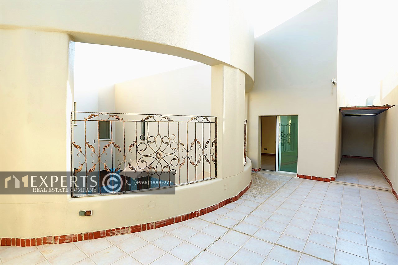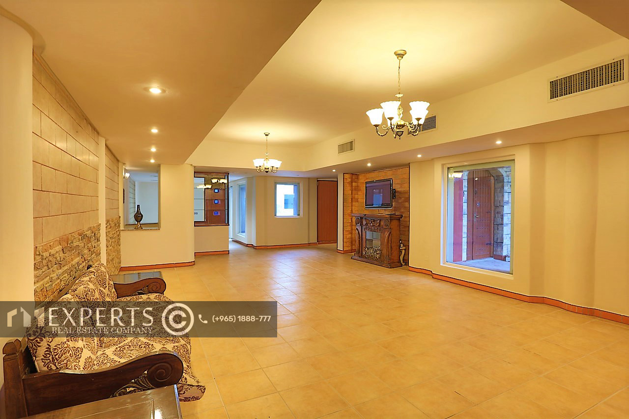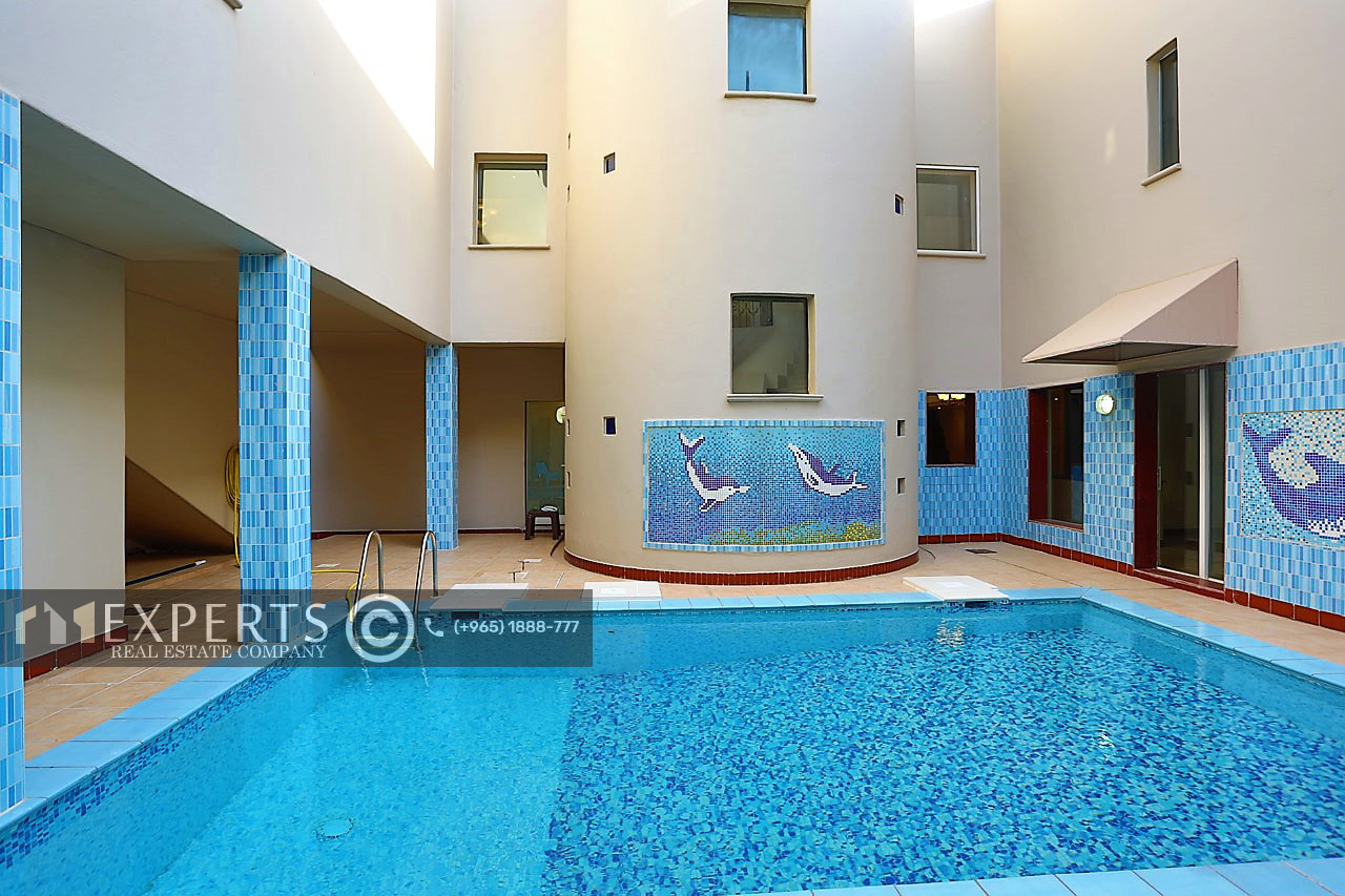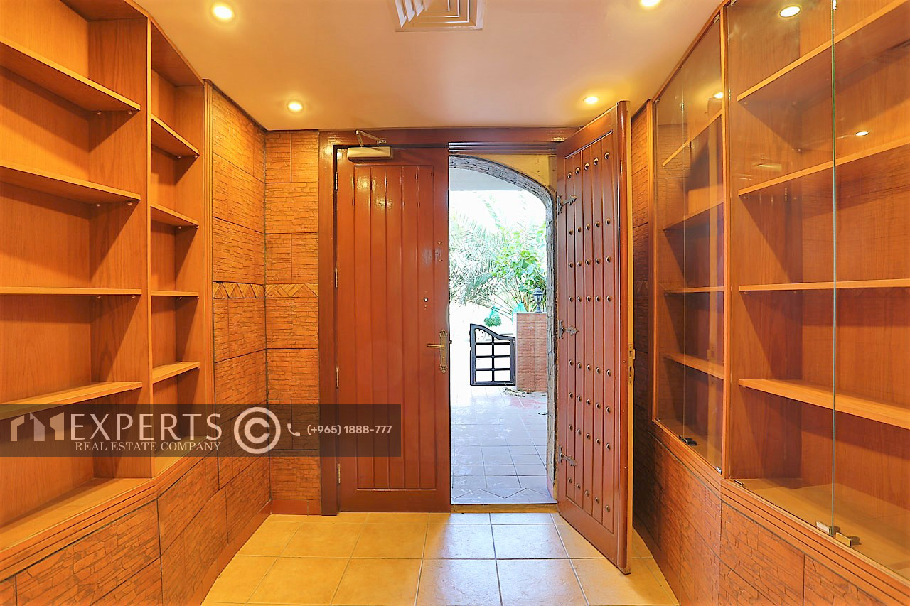 A Beautiful Spanish Style Villa, 2 floors, 2 large living rooms, dining room, 2 equipped kitchens, 4 bedrooms, 1 master bedroom, maid’s room, 5 Bathrooms, private indoor parking, swimming pool, driver’s room in Mubaral Al Kabeer area